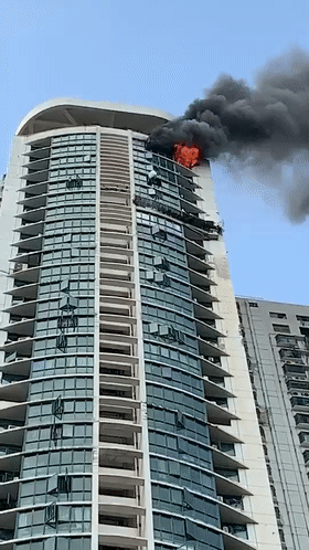 從市民發(fā)來的報料視頻和圖片看到,著火樓層比較高,一直在冒著濃煙還有不斷有明火冒出,那么,現(xiàn)場情況如何?