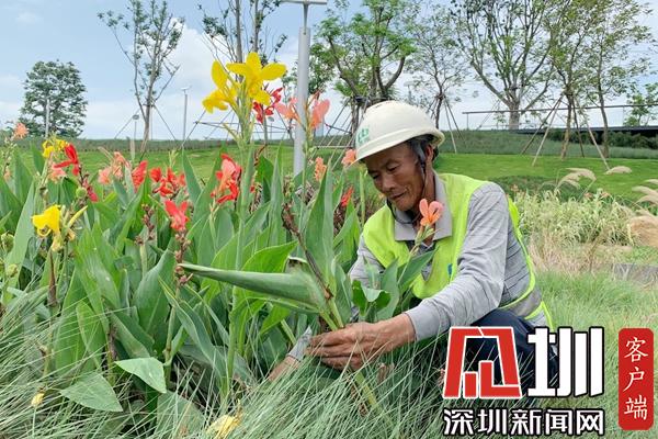 深圳新聞網(wǎng)7月24日訊(見圳客戶端、深圳新聞網(wǎng)記者 王世龍 周斐斐 王志明 羅瑜 董非  李詩萌 實習生 林怡)謝成生,來自廣西柳州,是深圳前海的一名綠化養(yǎng)護工人,主要負責前海運動公園的綠化養(yǎng)護工作,目前,他是養(yǎng)護部的技術(shù)班長。每天早上,他都會早早地來到自己工作的地方,迎著朝陽,對花木進行澆水、修剪、施肥,開始一天的勞作。