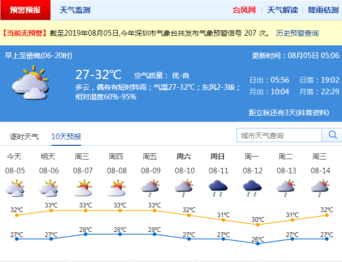 見圳客戶端·深圳新聞網(wǎng)2019年8月5日訊 上周末的暴雨為深圳帶來(lái)了一絲清涼,有市民表示,下雨涼快了,空調(diào)都不用開就能睡了。然而,清涼的日子總是短暫的,炎熱的天氣又將到來(lái)。