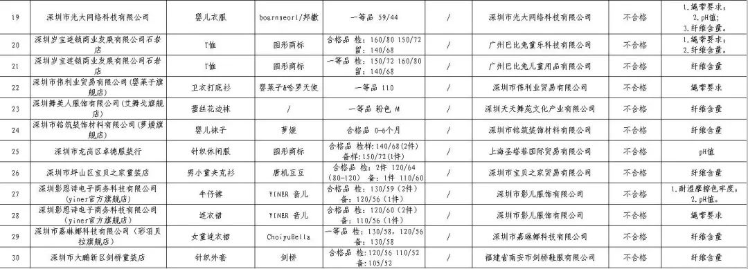 深圳2019童裝抽檢“黑名單”公布,發(fā)現(xiàn)不合格樣品30批次