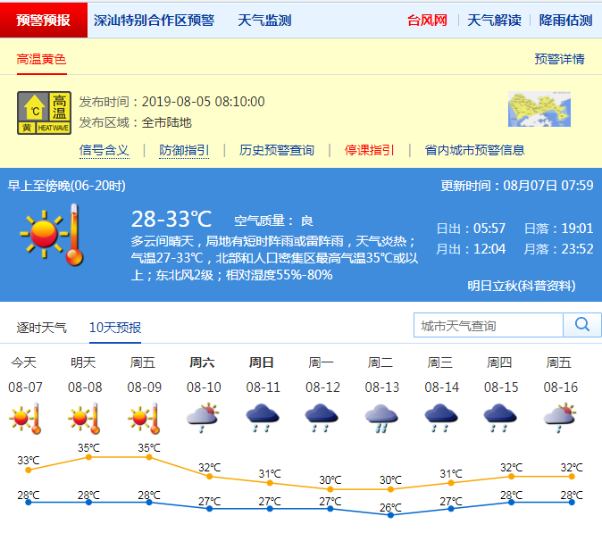 深圳今日最高溫達(dá)33℃,未來三天天氣持續(xù)炎熱