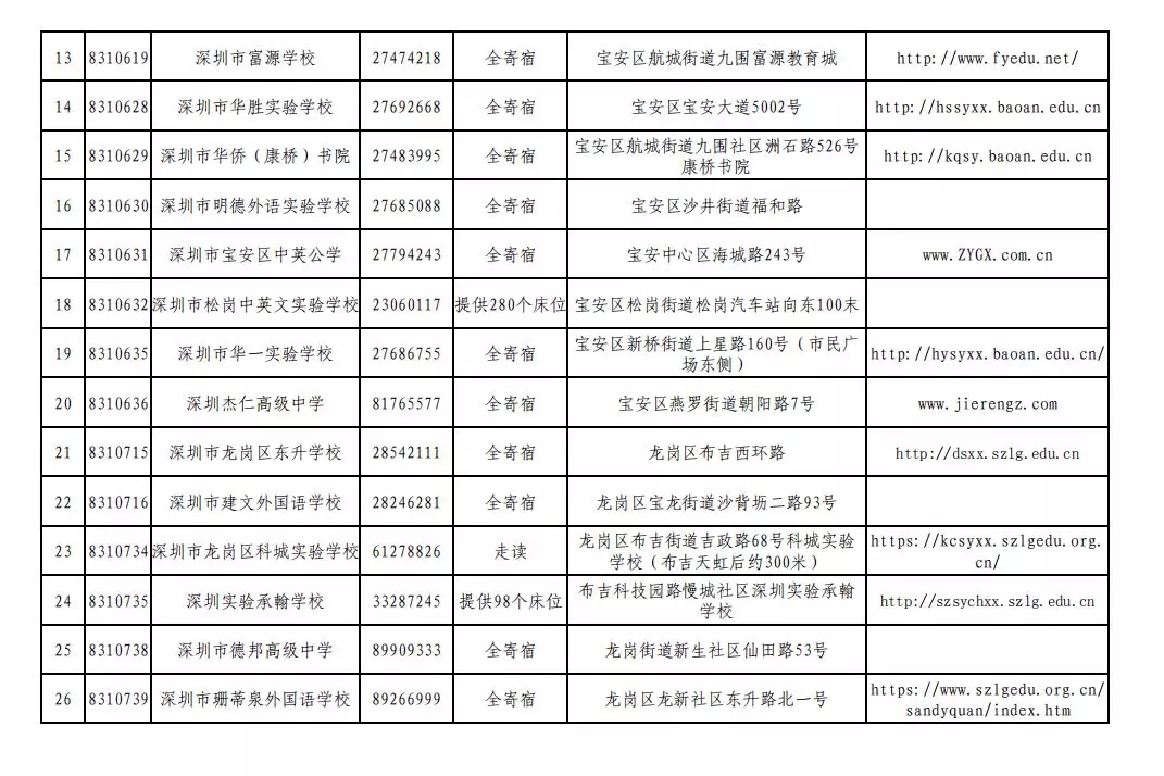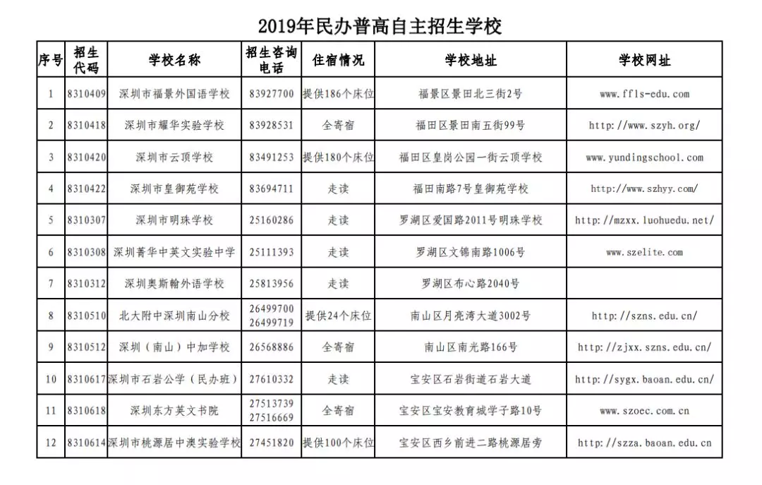 (二)考生可直接到招生學校報名。招生學校地址、聯(lián)系電話等信息,可通過附表或市招考辦印發(fā)的《深圳市2019年高中階段學校招生簡介》查詢。