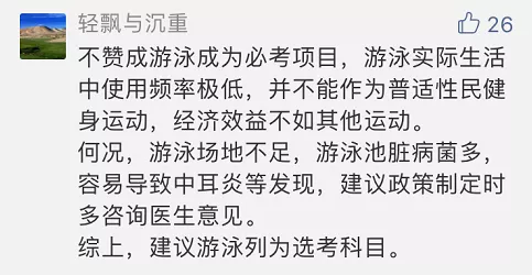 六萬多考生當中參加游泳考試的竟然不足兩百人。