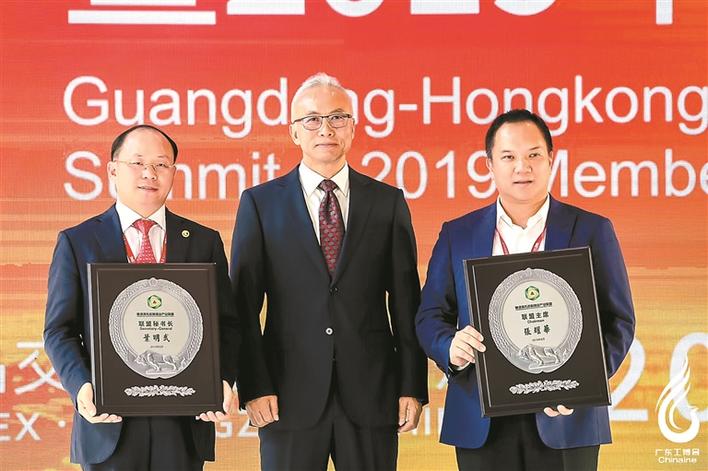 ▲2019年8月8日,中國國際貿(mào)易促進(jìn)委員會機(jī)械行業(yè)分會會長孫喜田(中)向張耀華(右一)授予粵港澳先進(jìn)制造業(yè)產(chǎn)業(yè)聯(lián)盟主席牌匾。