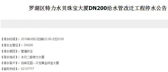 停水時(shí)間:2019年8月22日晚22:00-次日8:00