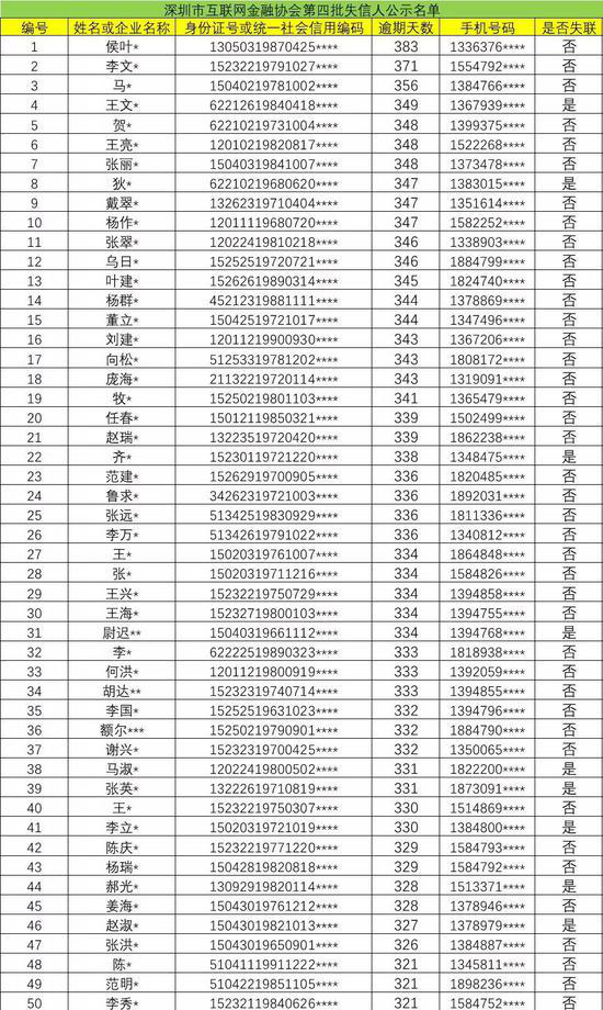 深圳第四批網(wǎng)貸失信人黑名單公布!有你認(rèn)識(shí)的人嗎?