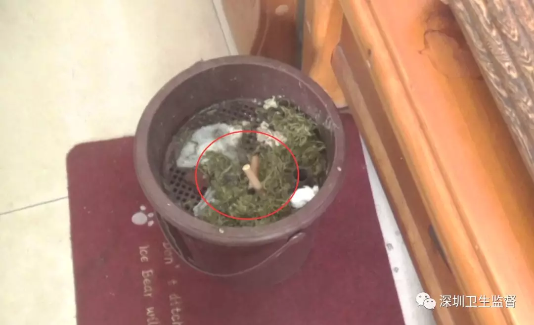執(zhí)法人員發(fā)現(xiàn)垃圾桶內(nèi)就有兩根熄滅的煙頭