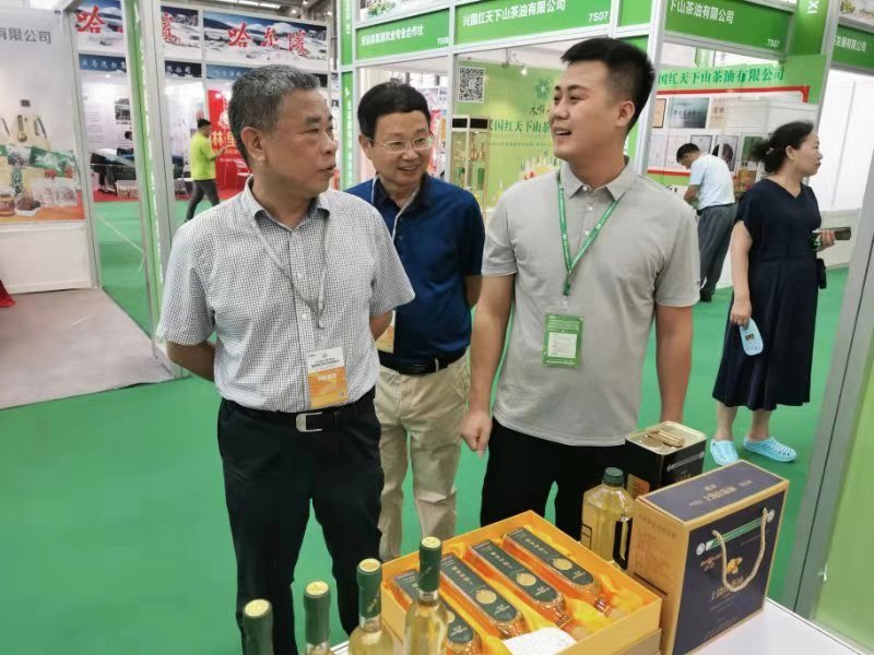 展銷會(huì)期間,市委常委、政法委書記陳榮高,市農(nóng)業(yè)農(nóng)村局黨組成員、副局長(zhǎng)呂文生一行特意走訪了參加本次展會(huì)的多家企業(yè)。在江西油脂有限公司的展區(qū),陳書記詳細(xì)了銷售人員紅花山茶油銷售情況,當(dāng)?shù)弥u出不少時(shí)滿意得點(diǎn)頭稱贊,并勉勵(lì)銷售人員要以此為契機(jī),讓更多的上饒優(yōu)質(zhì)農(nóng)產(chǎn)品走進(jìn)粵港澳大灣區(qū),走向全世界。