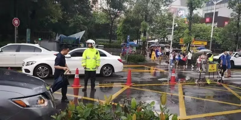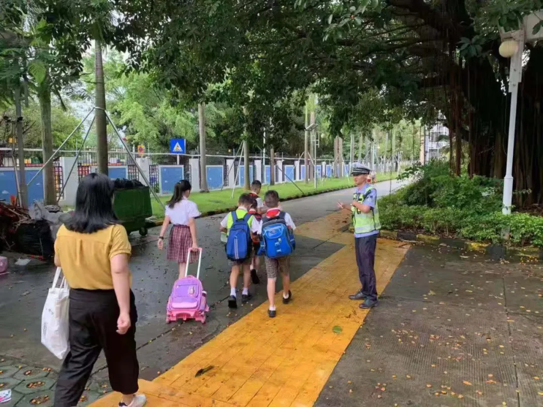 交警蜀黍?qū)⒌饺懈魉行W(xué)校