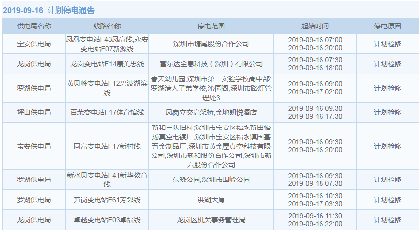 9月5日至20日,深圳這些地方停電!快看影響你家沒(méi)