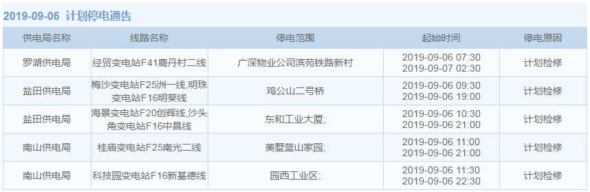 據(jù)中國(guó)南方電網(wǎng)最新消息,9月13日起至9月20日,深圳這部分地區(qū)要停電了!此前,晶報(bào)APP還報(bào)道了8月27日至9月12日深圳停電的情況:(8月27日至9月12日,深圳這些地方停電!快看影響你家沒(méi)),快來(lái)看看有沒(méi)有你家的吧。