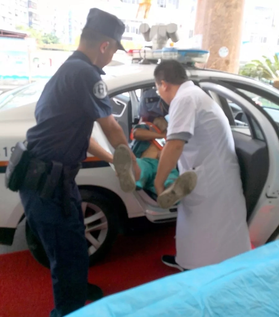 羅明星和交警隊(duì)員還有一名熱心群眾一起把這名環(huán)衛(wèi)工人抬上了警車。憑借著對轄區(qū)的了解,羅明星很快將他送到了最近的仁愛醫(yī)院。