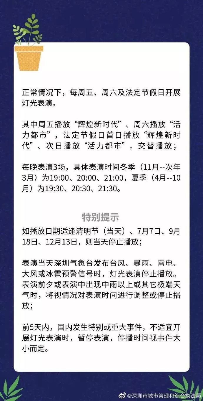9月13日(星期五),因市民中心廣場(chǎng)有項(xiàng)目施工,臨時(shí)占用了燈光表演觀看區(qū)域,為確保安全,當(dāng)晚中心區(qū)燈光表演暫停。由此帶來(lái)的不便,請(qǐng)市民和游客諒解!