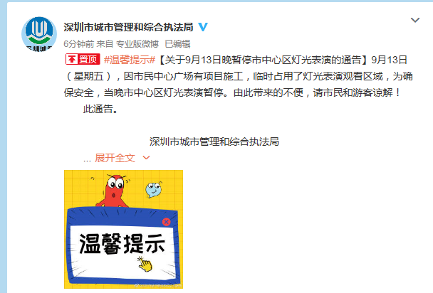 9月13日晚,也是就是中秋節(jié)當晚,中心區(qū)燈光表演暫停