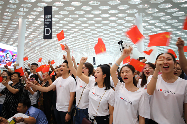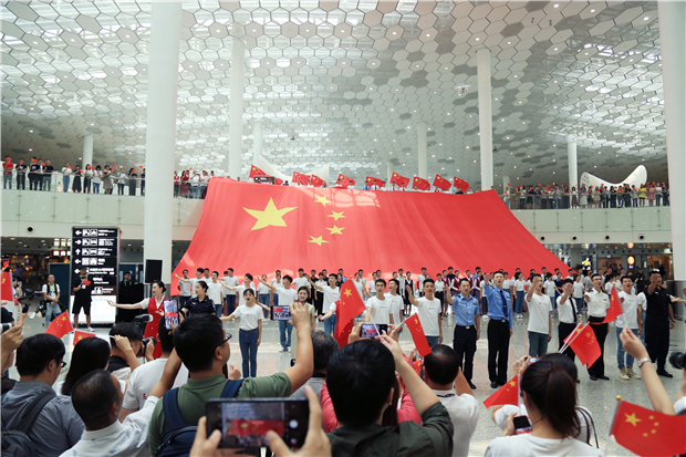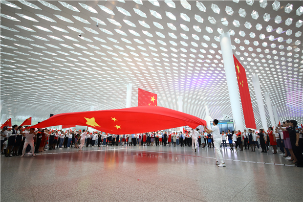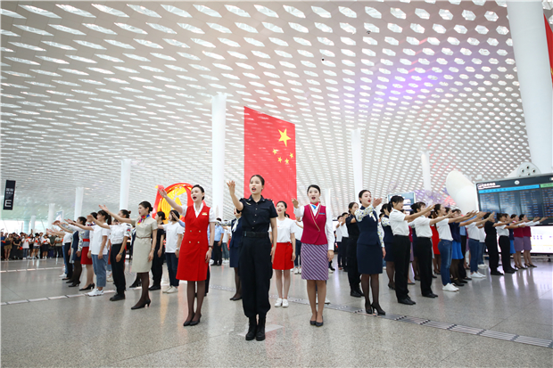 機場航站樓成“紅色海洋” 他們以這種方式慶祝新中國成立70周年