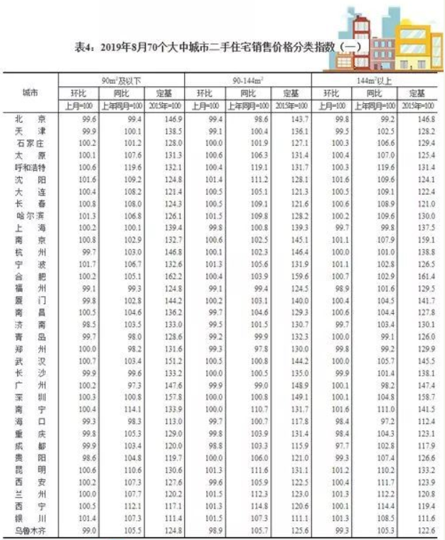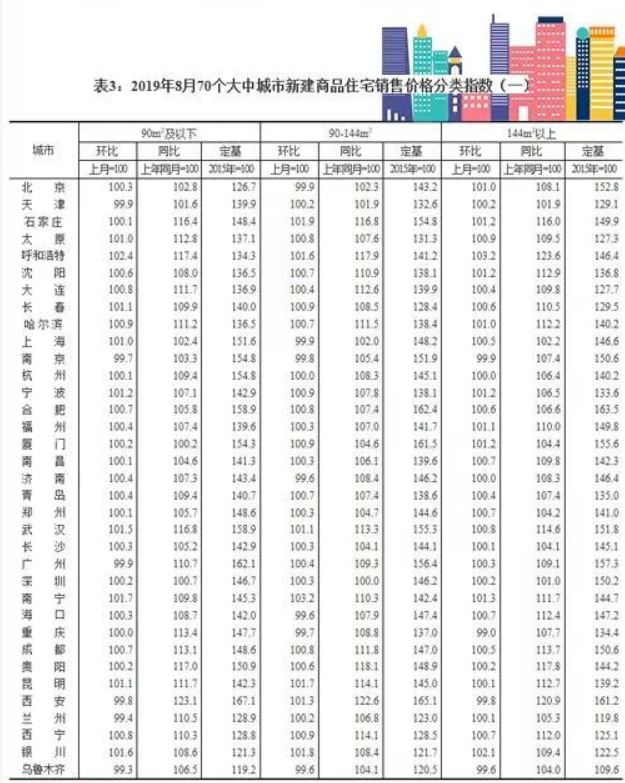 2019年8月份70個(gè)大中城市