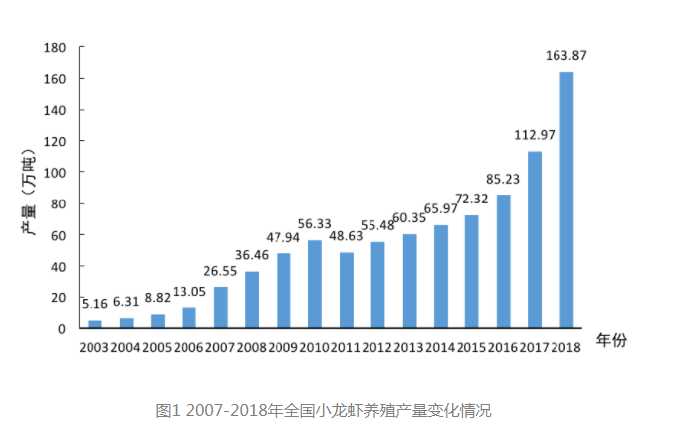 隨著生活水平的提高,人們對“食”提出了更高要求,色香味俱全的美食往往也更讓人難以抗拒?;疱仧拘↓埼r作為當代青年人的“最愛”,已獨得恩寵許多年,尤其是小龍蝦。每年夏季,是吃小龍蝦的旺季。據(jù)部分媒體不完全統(tǒng)計,光南京一個城市每年的龍蝦消費量都超萬噸,而北上廣深蓉5個城市,小龍蝦門店數(shù)均超3000家。此外,據(jù)2019年中國小龍蝦產(chǎn)業(yè)發(fā)展報告顯示,小龍蝦產(chǎn)業(yè)總產(chǎn)值達3690億元,占據(jù)了第三產(chǎn)業(yè)產(chǎn)值的主導(dǎo)地位。這種巨大的消費力帶動了小龍蝦養(yǎng)殖業(yè)的發(fā)展,到2018年,全國小龍蝦養(yǎng)殖產(chǎn)量已超163萬噸。