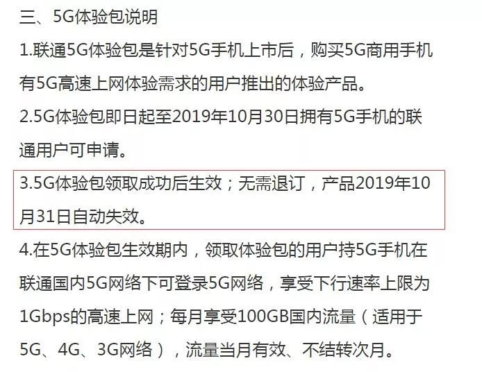 不過在中國聯(lián)通預約頁面顯示,"5G體驗包領取成功后生效;無需退訂,產品2019年10月31日自動失效。"所以5G套餐有可能是11月1日或10月底正式發(fā)售。