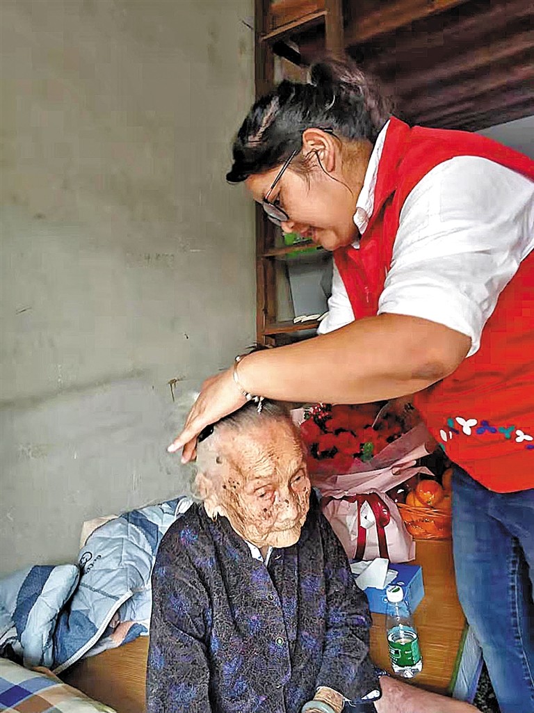采訪當天,老人看到來了這么多人,以為又是政府工作人員來慰問她了,好奇地問外孫女:“今天是過節(jié)嗎?”原來,逢年過節(jié)陳汝金都會收到慰問和祝福,社區(qū)工作人員和社康醫(yī)生也會經(jīng)常上門和她聊聊家常,了解老人家的身體狀況,因此老人對黨和政府送慰問送祝福一點都不陌生。去年,陳汝金老人剛滿百歲,鳳凰社區(qū)黨委還專門組織大家來到老人家中,為老人慶祝百歲生日,并送來大家的祝福和問候。