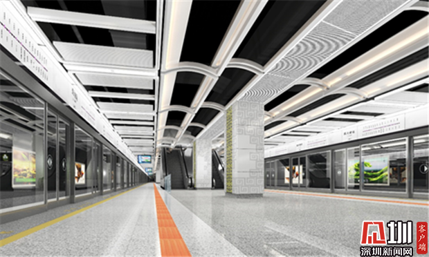 本線路標(biāo)準(zhǔn)站包括前灣站、荔林站、南油西站、南山書城站、深大南站、高新南站,標(biāo)準(zhǔn)站設(shè)計方案天花采用“一步一高,發(fā)展騰飛”的疊級造型,充分結(jié)合車站的綜合管線設(shè)計,利用車站空間特點,在空間上重點體現(xiàn)個性區(qū),保證空間的整體性,讓空間更為舒展、開闊。