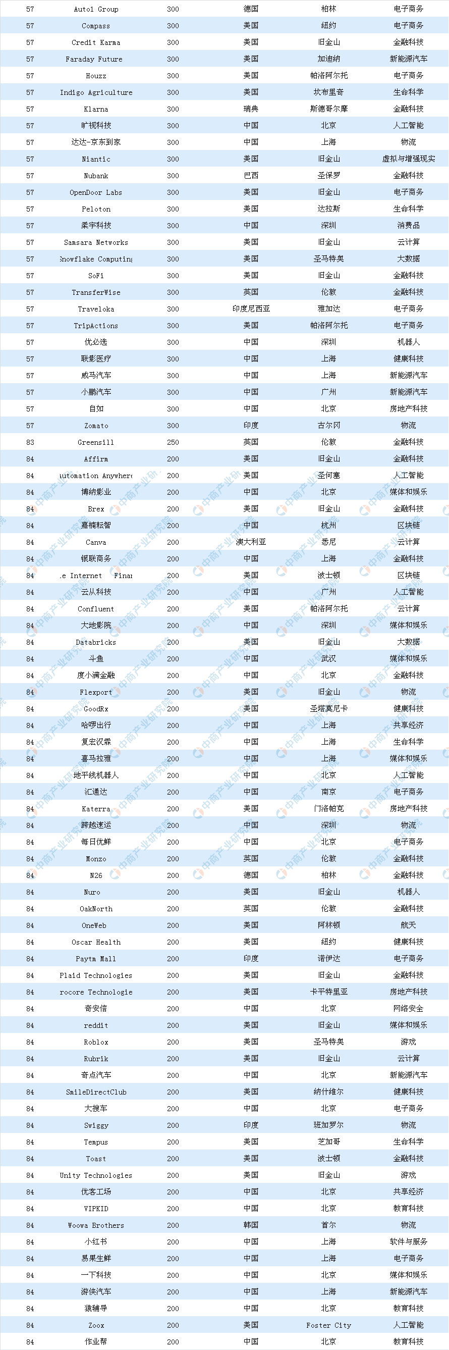 全球獨角獸榜單前十名的還有Infor、JUUL Labs、陸金所、愛彼迎、SpaceX、WeWork、Stripe??偛课挥谏虾5年懡鹚怯芍袊桨卜趸睦碡斊脚_,已從春華資本、中糧集團(tuán)和國際私募股權(quán)基金B(yǎng)lackPine等融資30億美元。另有微眾銀行、菜鳥網(wǎng)絡(luò)、京東數(shù)科、快手、大疆、京東物流、水滴等中國公司上榜。