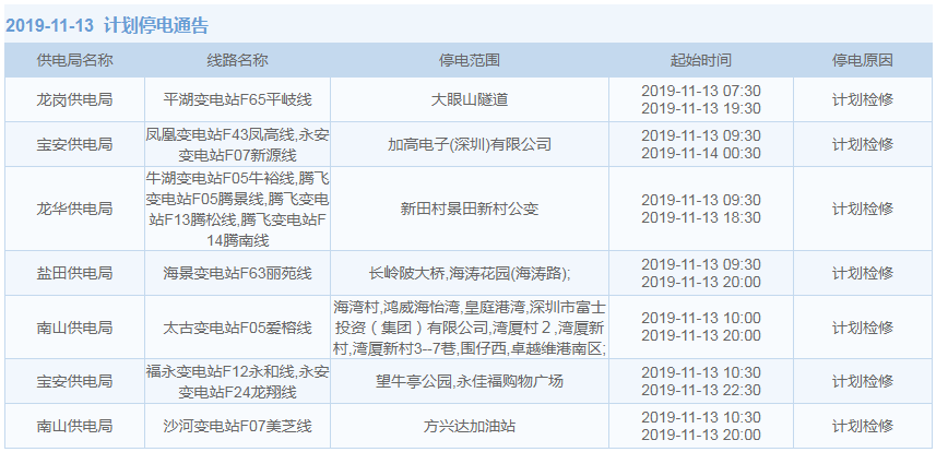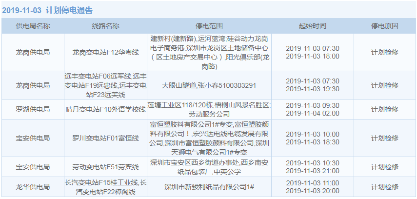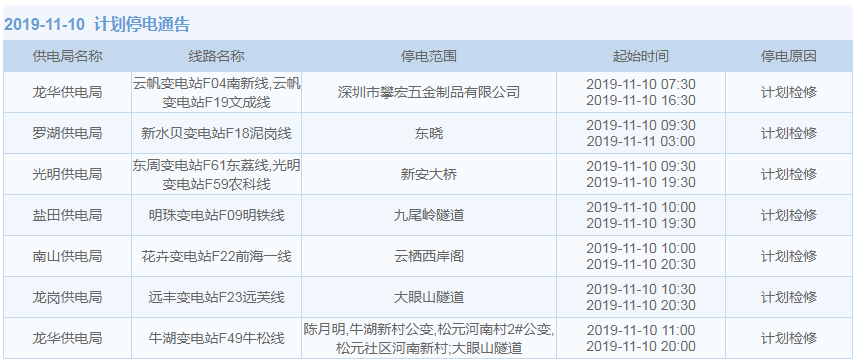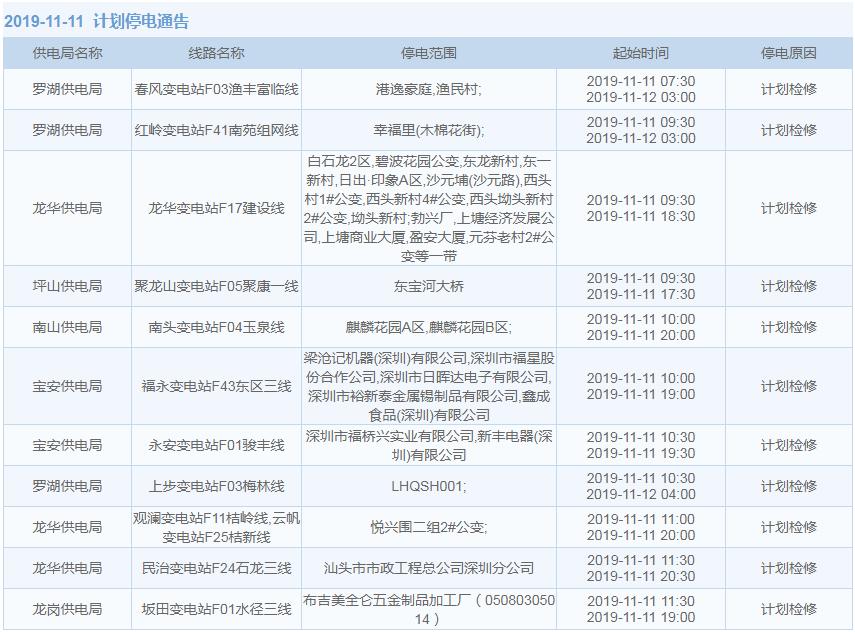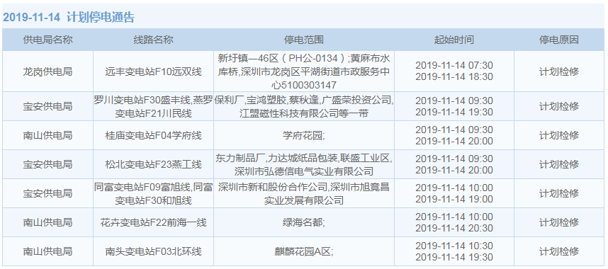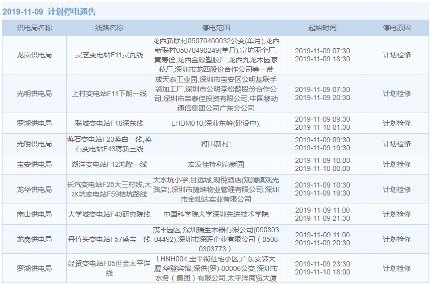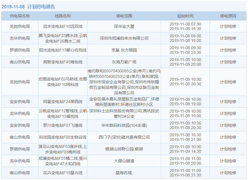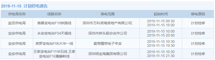 11月1日-15日,深圳這些地方將停電(附全名單)