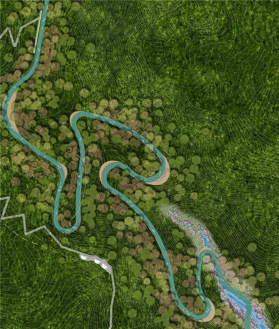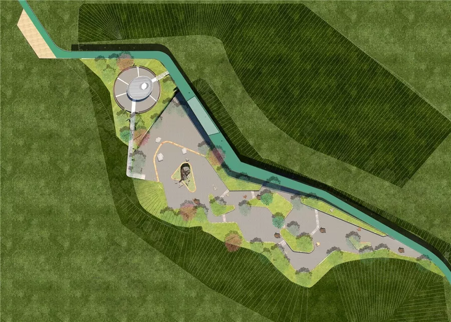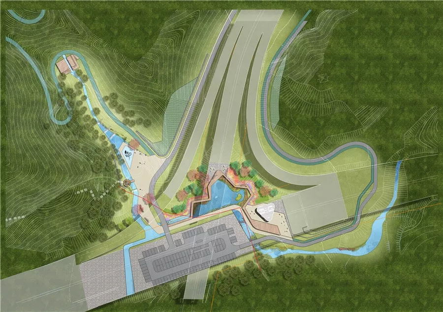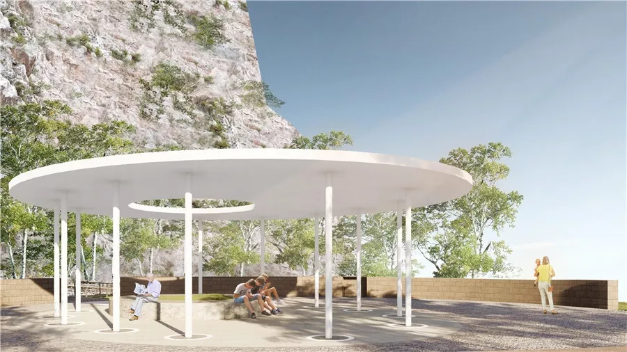 拼搏巖嶺的設(shè)計(jì)試圖恢復(fù)場(chǎng)地記憶,以石材結(jié)合銹板的形式塑造場(chǎng)地表達(dá)堅(jiān)韌精神,同時(shí)保留現(xiàn)狀的巖生植物表達(dá)頑強(qiáng)拼搏的生命力。