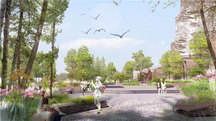 本節(jié)點(diǎn)由改革之路、群賢廣場(chǎng)和人才驛站三部分組成,環(huán)廣場(chǎng)登山道沿線建有攬賢臺(tái)、人才臺(tái)、聚賢坡三個(gè)小節(jié)點(diǎn)。