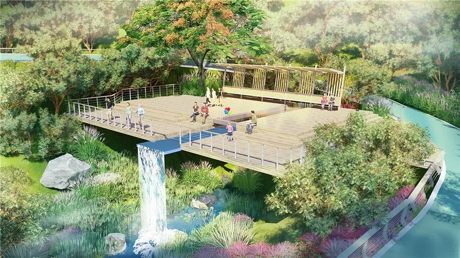 天然的溪谷,沿線配上蝴蝶花、天堂鳥、鳶尾等寓意幸福的開花植物,營(yíng)造出一片繁花似錦、彩蝶紛飛的溫馨景觀,代表著人才在深圳奮斗的成果,也寓意著人才內(nèi)心滿滿的幸福感。