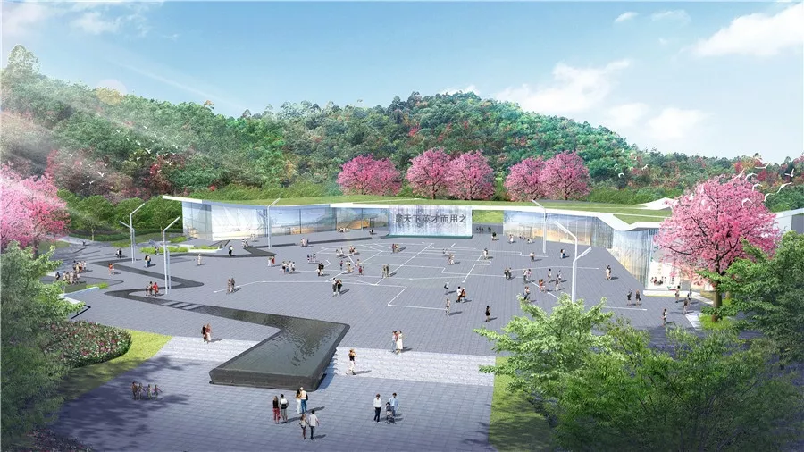 群賢廣場取名源于《蘭亭集序》中的“群賢畢至”,寓意匯聚天下賢能之才。廣場占地面積約5600平方米,主要由花崗巖鋪設(shè)而成。廣場作為人才綠道示范段的主題景點,象征著深圳人才門戶。圍繞習(xí)近平總書記提出的“聚天下英才而用之”的核心人才觀,打造群賢廣場作為每年11月人才節(jié)日的活動場地之一。借用《蘭亭集序》中“流觴曲水”的典故作為設(shè)計理念打造水景從廣場中彎曲而過,同時采用簡化的全國鐵路網(wǎng)鋪裝,寓意五湖四海、人才匯聚,歡迎全國乃至全世界的人才來深圳,為深圳發(fā)展添磚加瓦。