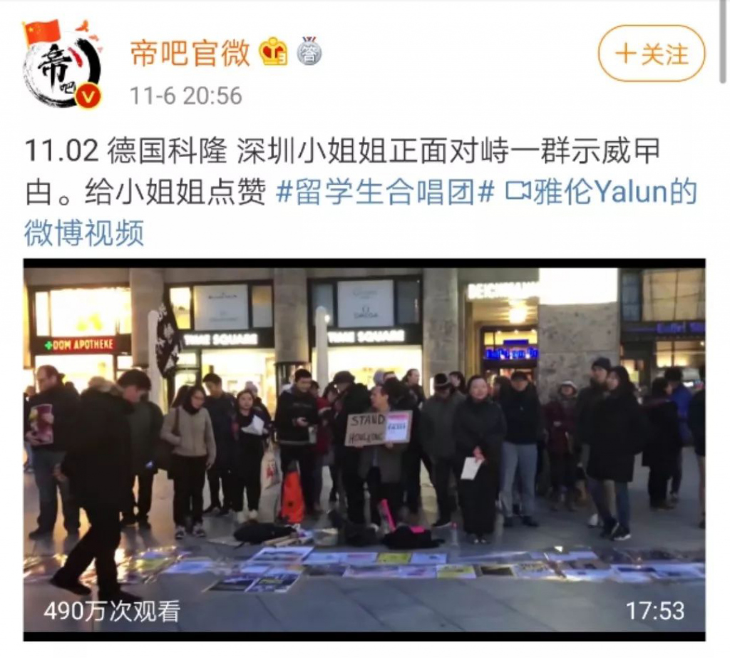 深圳晚報(bào)2019年11月8日訊 11月2日晚,在德國科隆街頭,一位來自中國內(nèi)地的女孩,用中、英、德三種語言霸氣對峙香港示威者。她思維清晰、證據(jù)充足、擲地有聲。面對姑娘的質(zhì)問,示威者們或以喊口號、唱歌無禮應(yīng)對;或顧左右而言他。這位女孩也因?yàn)橐曨l在網(wǎng)上的迅速傳播而引發(fā)海量關(guān)注。(此前報(bào)道:解氣!深圳女孩回懟香港示威者,4種語言切換表現(xiàn)666)