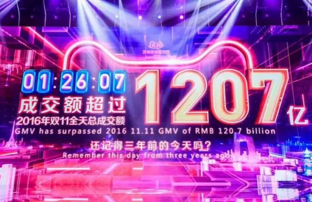 南方日報2019年11月11日訊 11月11日剛過1小時26分07秒,天貓雙11實時成交額達(dá)1207億元,超越2016年全天。去年,天貓雙11成交額抵達(dá)1207億用時8小時8分52秒,這也意味著,今年成交破1207億速度比去年快了近7小時。