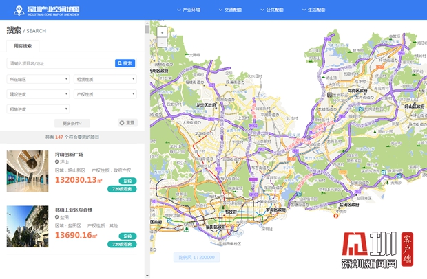 深圳產(chǎn)業(yè)空間地圖相當(dāng)直觀實(shí)用,哪個(gè)區(qū)有合適的產(chǎn)業(yè)用房房源一目了然。