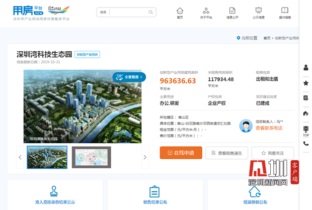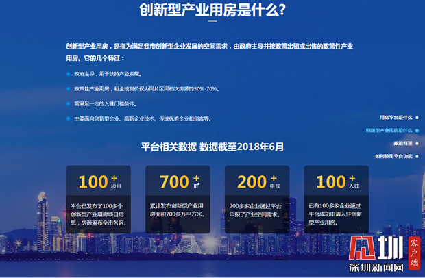 記者在平臺(tái)官網(wǎng)看到,平臺(tái)不僅提供創(chuàng)新型產(chǎn)業(yè)用房申請(qǐng)入口、平臺(tái)專享金融服務(wù)、企業(yè)空間需求申報(bào),還設(shè)有深圳產(chǎn)業(yè)空間地圖、720度全景看房,頁(yè)面簡(jiǎn)潔直觀。