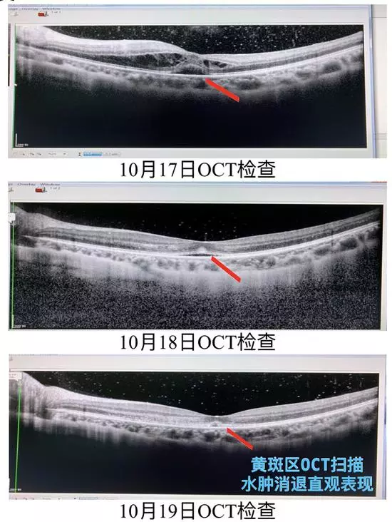 病房立即邀請(qǐng)眼科醫(yī)生會(huì)診,發(fā)現(xiàn)患者出現(xiàn)雙眼脈絡(luò)膜視網(wǎng)膜炎,左眼矯正視力僅剩0.3。經(jīng)過及時(shí)對(duì)癥治療,三天后,患者左眼視力由發(fā)病初的矯正視力0.3提高到矯正視力0.8,現(xiàn)視力還在進(jìn)一步恢復(fù)中。