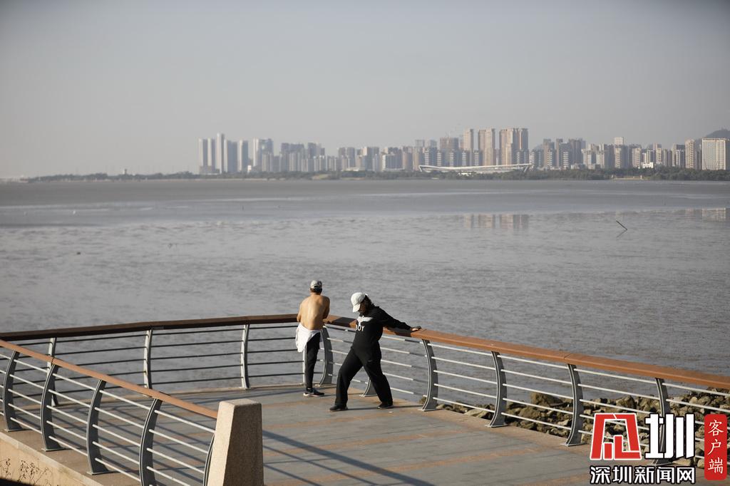一位在深圳灣晨練的市民。