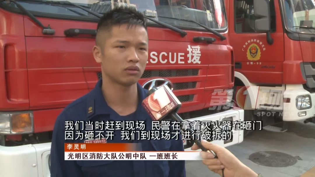 該戶人家用的是密碼鎖,可能是因?yàn)槭掳l(fā)緊急,再加上屋內(nèi)濃煙嗆鼻,女主人竟然一直說(shuō)不準(zhǔn)房間大門的開(kāi)鎖密碼,危急時(shí)刻,消防隊(duì)員及時(shí)趕到了現(xiàn)場(chǎng)。
