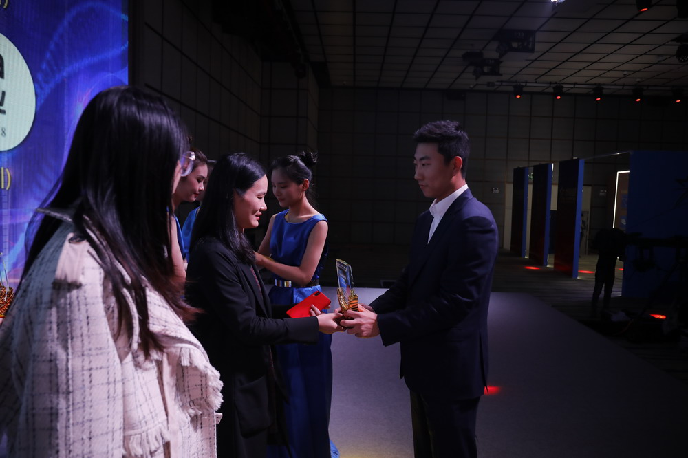 水貝珠寶集團(tuán)副總裁盧森榮為“房地產(chǎn)行業(yè)最受網(wǎng)民歡迎品牌”頒獎(jiǎng)。