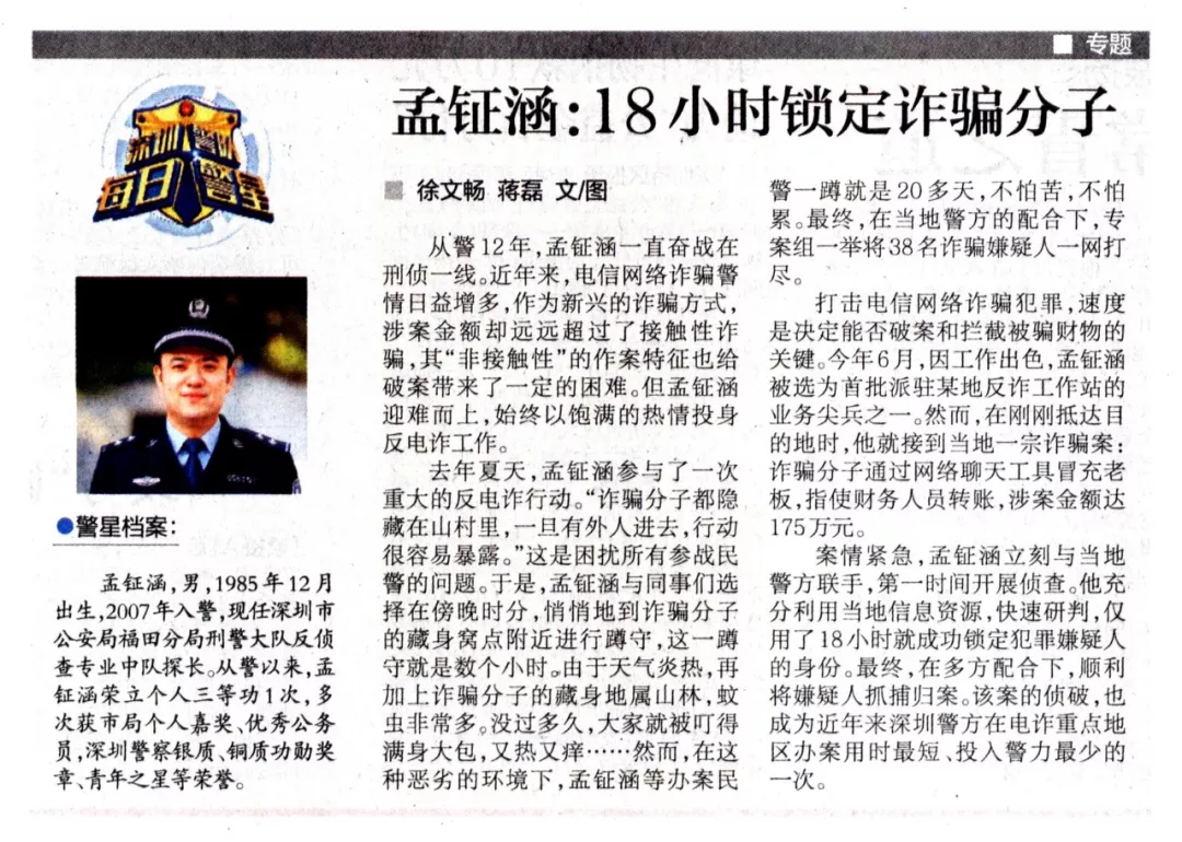 每日警星 | 孟鉦涵:18小時鎖定詐騙分子