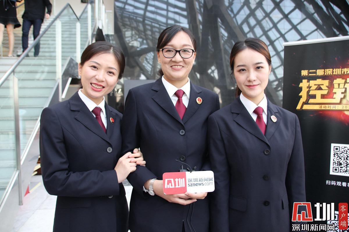 辯方第二隊接受深圳新聞網(wǎng)記者采訪,從左到右分別是鄧銳,李悅,劉思瑤三位律師。