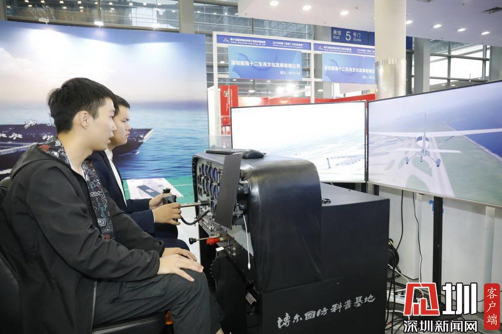 市民現(xiàn)場體驗?zāi)M飛行。
