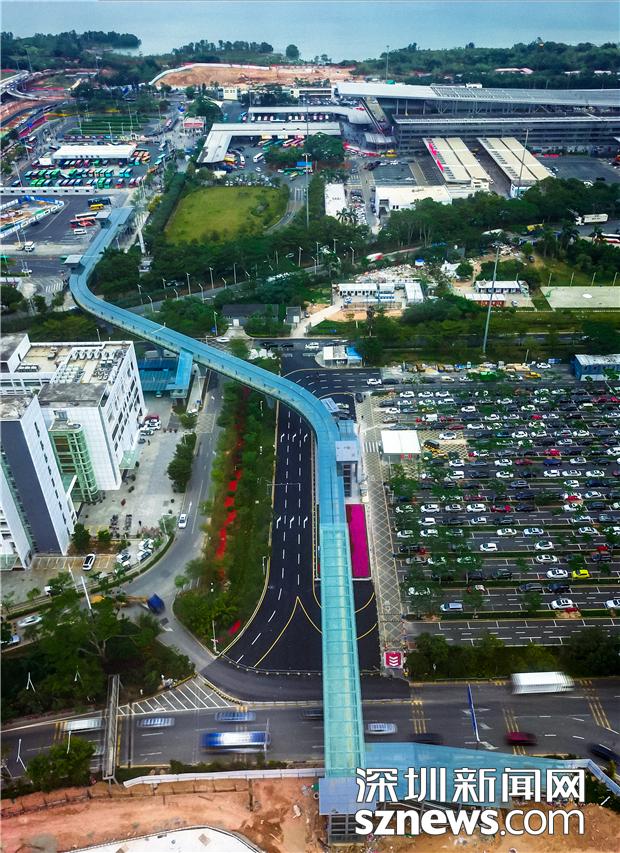 深圳灣口岸人行天橋航拍。(深圳市交通運(yùn)輸局供圖)