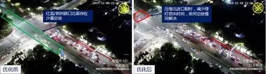 紅荔/新洲路口夜間信號燈優(yōu)化前后對比