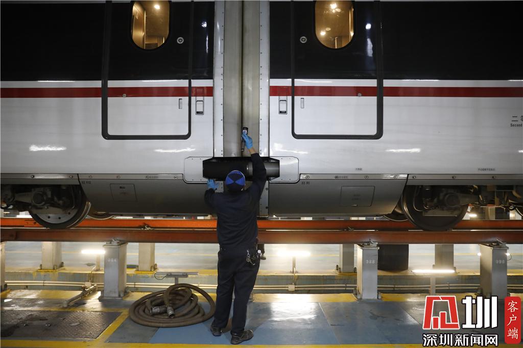 新春走基層|探秘春運(yùn)里的深圳動(dòng)車(chē)所 高鐵列車(chē)排隊(duì)"體檢""洗澡"