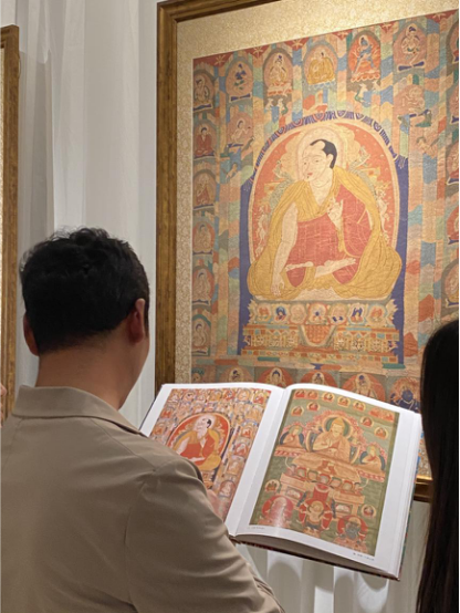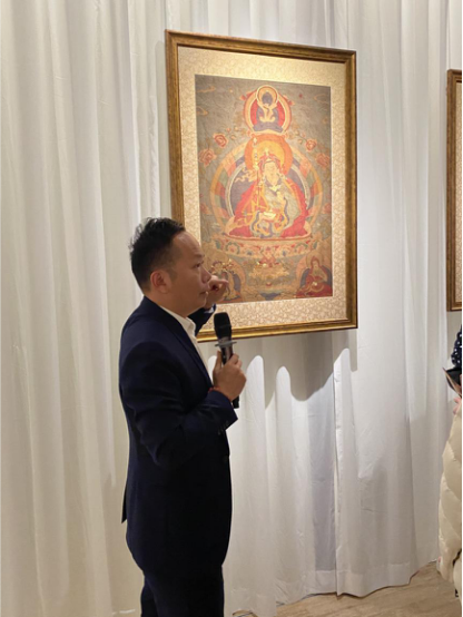 為了讓觀眾更好地了解本次展出唐卡的工藝美及其背后所蘊(yùn)含的人文價(jià)值,桂心堂主人邀請(qǐng)了布達(dá)拉宮唐卡專(zhuān)家——次仁占堆老師、曾長(zhǎng)期生活于蘇州的資深唐卡愛(ài)好者葉小龍,一同在1月4日的下午,給觀眾們帶來(lái)了一場(chǎng)深入淺出的導(dǎo)覽活動(dòng)。