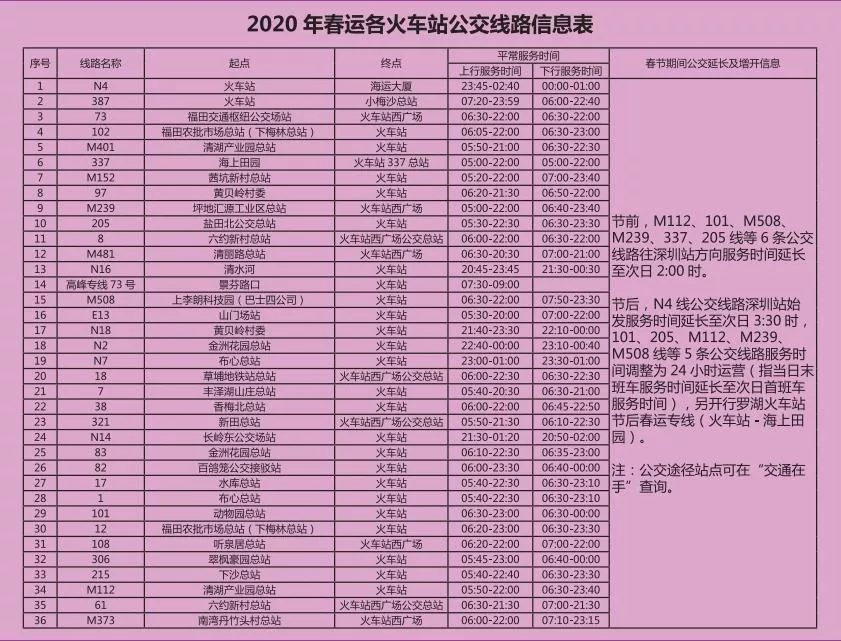 史上最全!深圳各大火車(chē)站途經(jīng)公交線運(yùn)營(yíng)時(shí)間都在這兒!