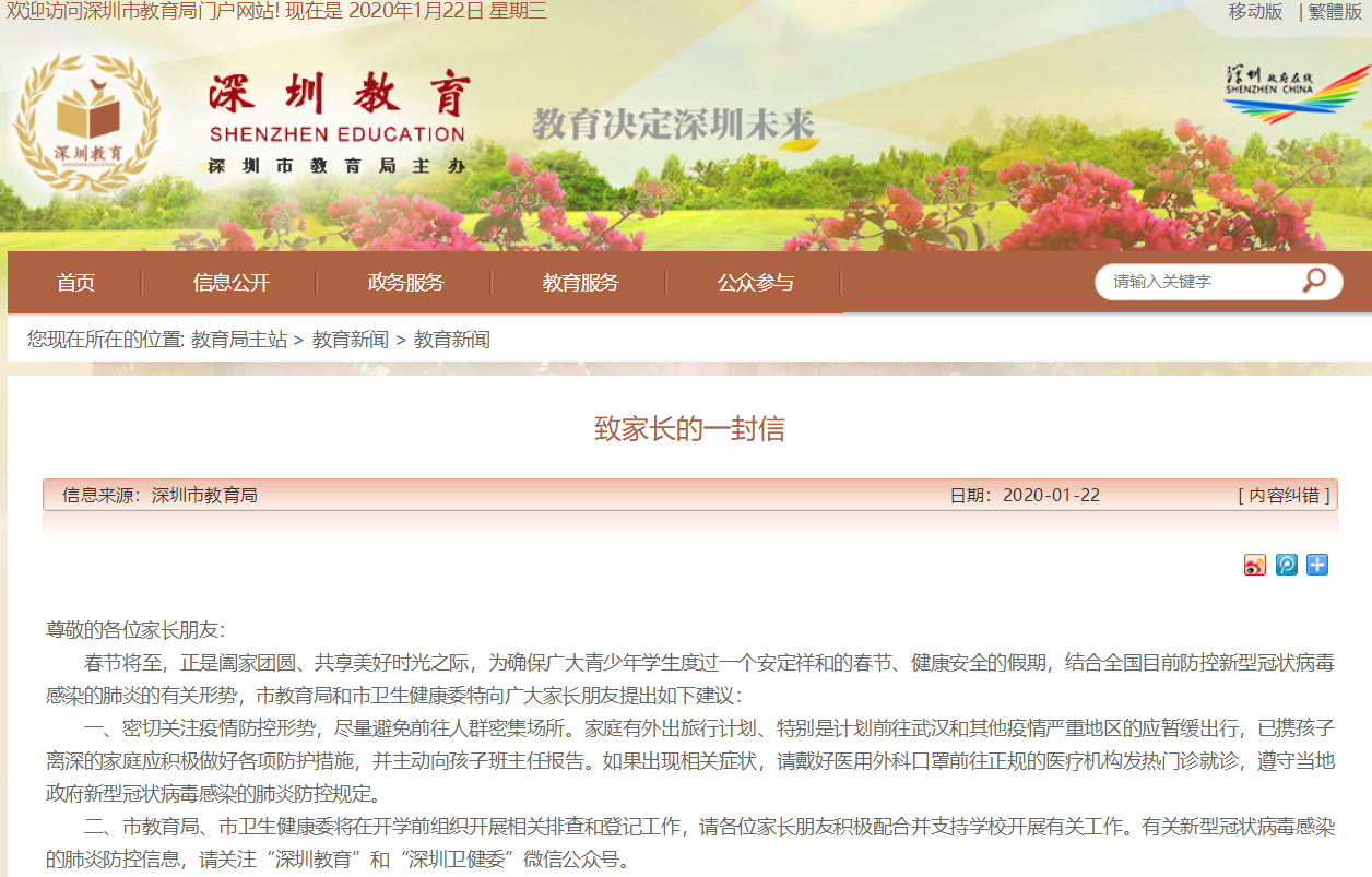 深圳市教育局下發(fā)緊急通知:師生不要前往武漢,培訓(xùn)機(jī)構(gòu)即日起停課