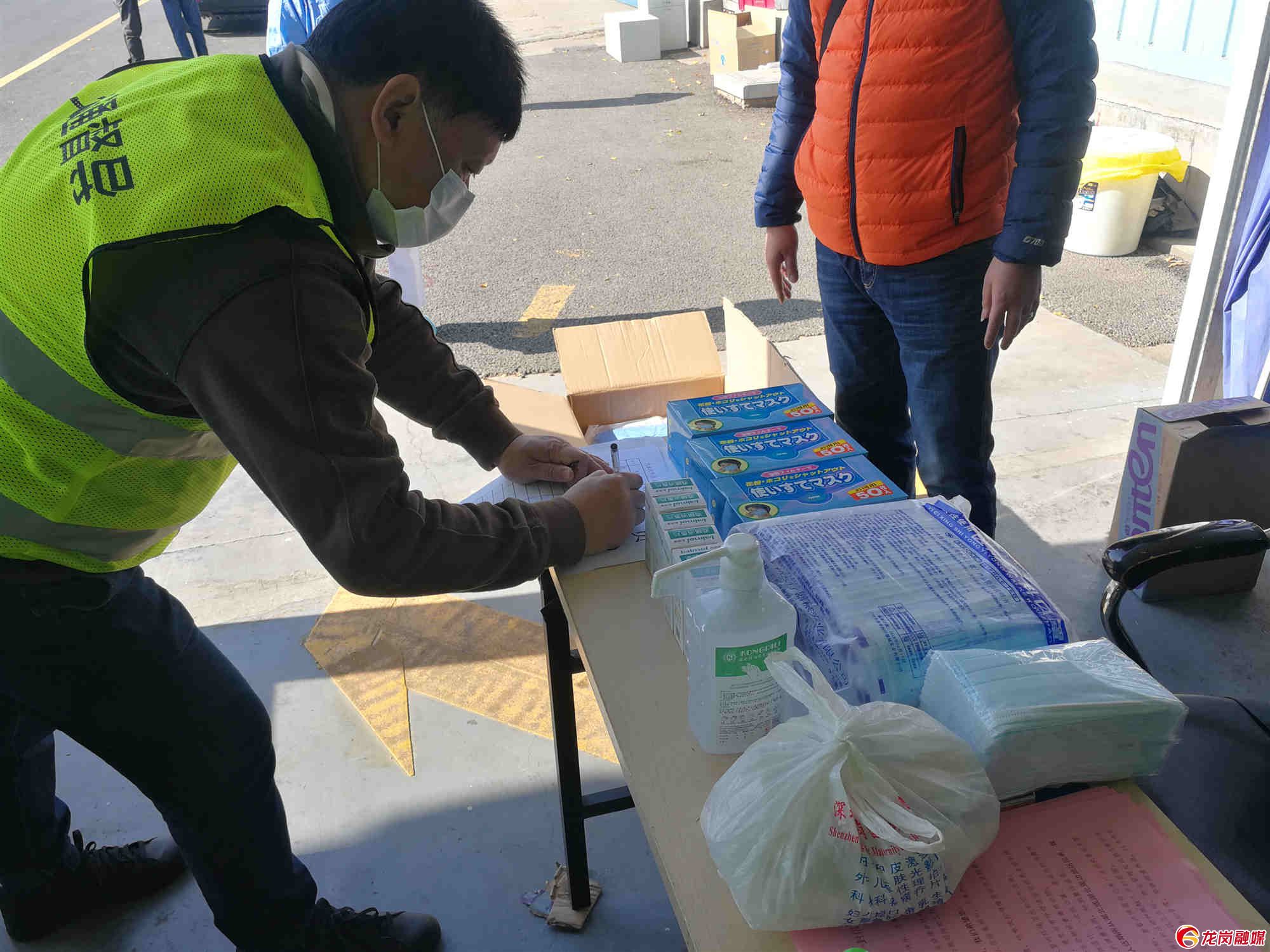 喻東在卡點核對發(fā)放醫(yī)療物資