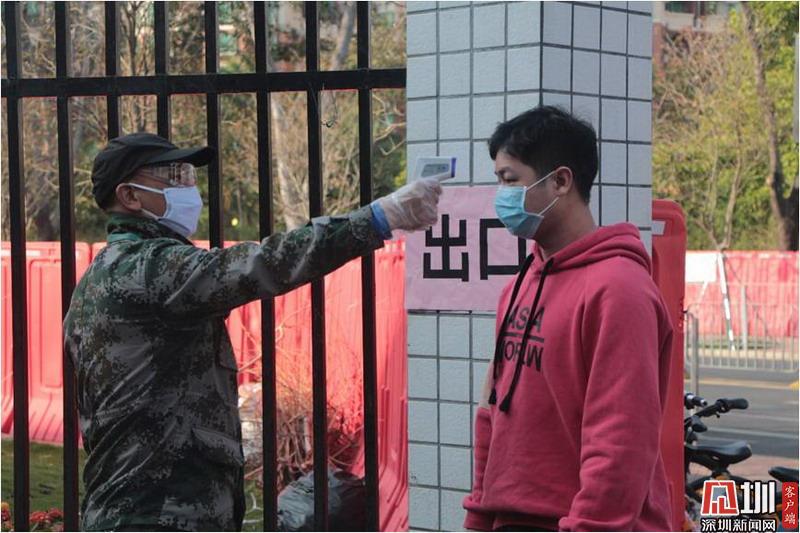福田農(nóng)批市場(chǎng)的管理人員正在為到訪的市民測(cè)量體溫