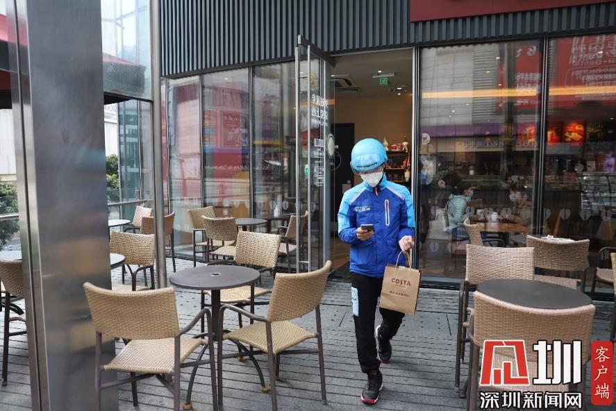 在咖啡店等待商家制作完成,取貨后,王彭輝便馬不停蹄地騎著電動(dòng)車前往訂單上的地址。平日繁華的南山商區(qū),現(xiàn)在空空蕩蕩的,除了偶爾有車輛開過,路上幾乎都是外賣小哥、快遞小哥的身影,“現(xiàn)在就是大家都待在家里,路上人和車少了,我們也能更快地把訂單送達(dá)。”王彭輝說:“我以前是在梅林那邊工作,剛開始來南山這邊送外賣的時(shí)候,對(duì)這里的路不熟悉,覺得每個(gè)路口都長(zhǎng)得一樣,抬頭都是大廈,低頭都是人,但是做得久了以后,慢慢的就熟悉了。”